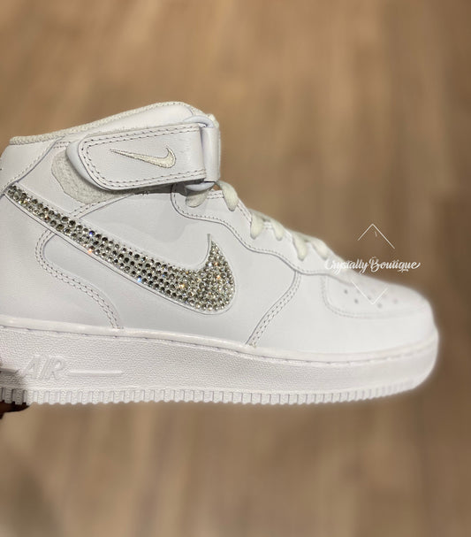 Adult Nike Air Force Ones Mid custom Bling Swarovski & Rhinestone Clear Crystals White Sizes 5 - 11 UK