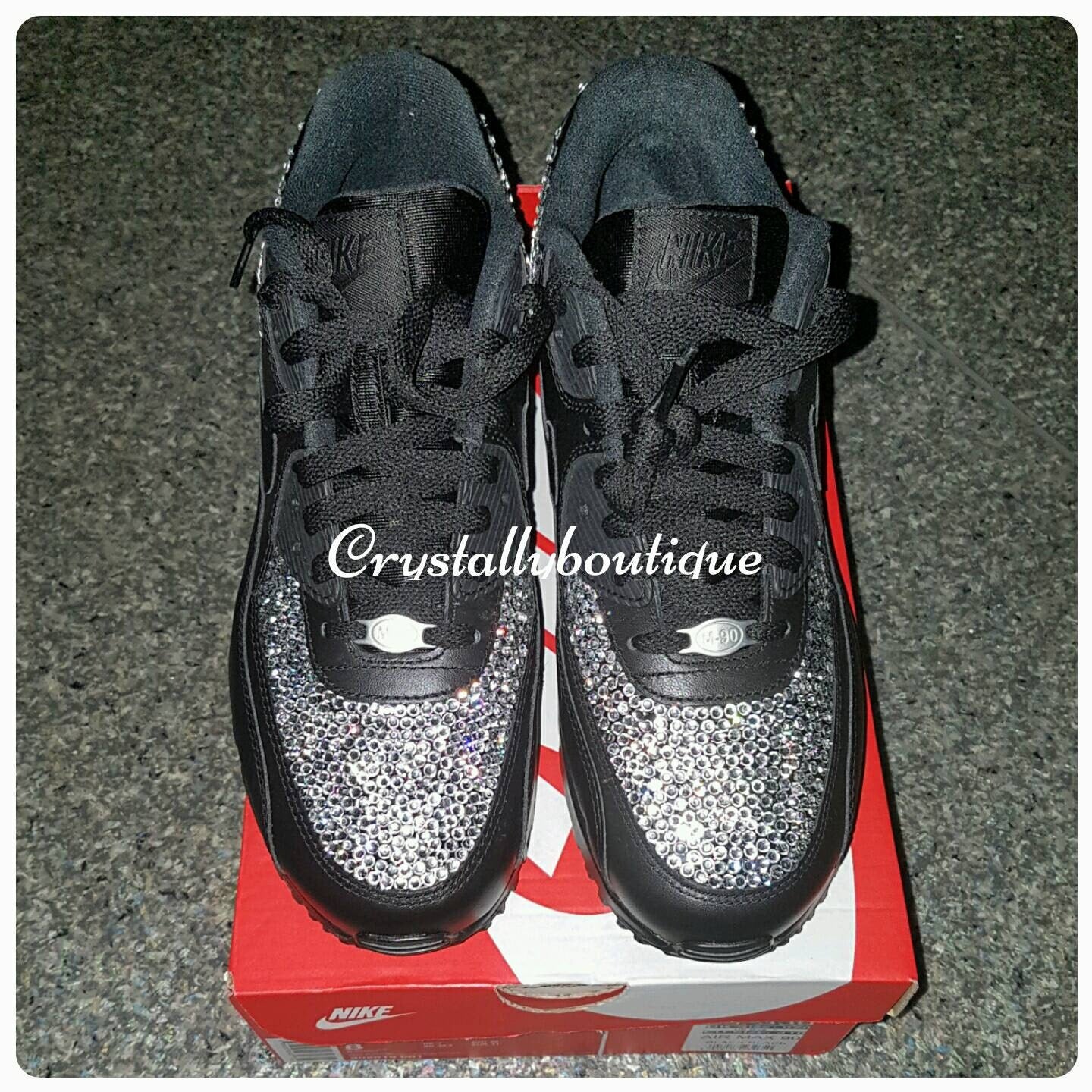Junior Swaroski & Rhinestone Nike Air Max 90 Customised Bling Black size 3 4 5 5.5 UK
