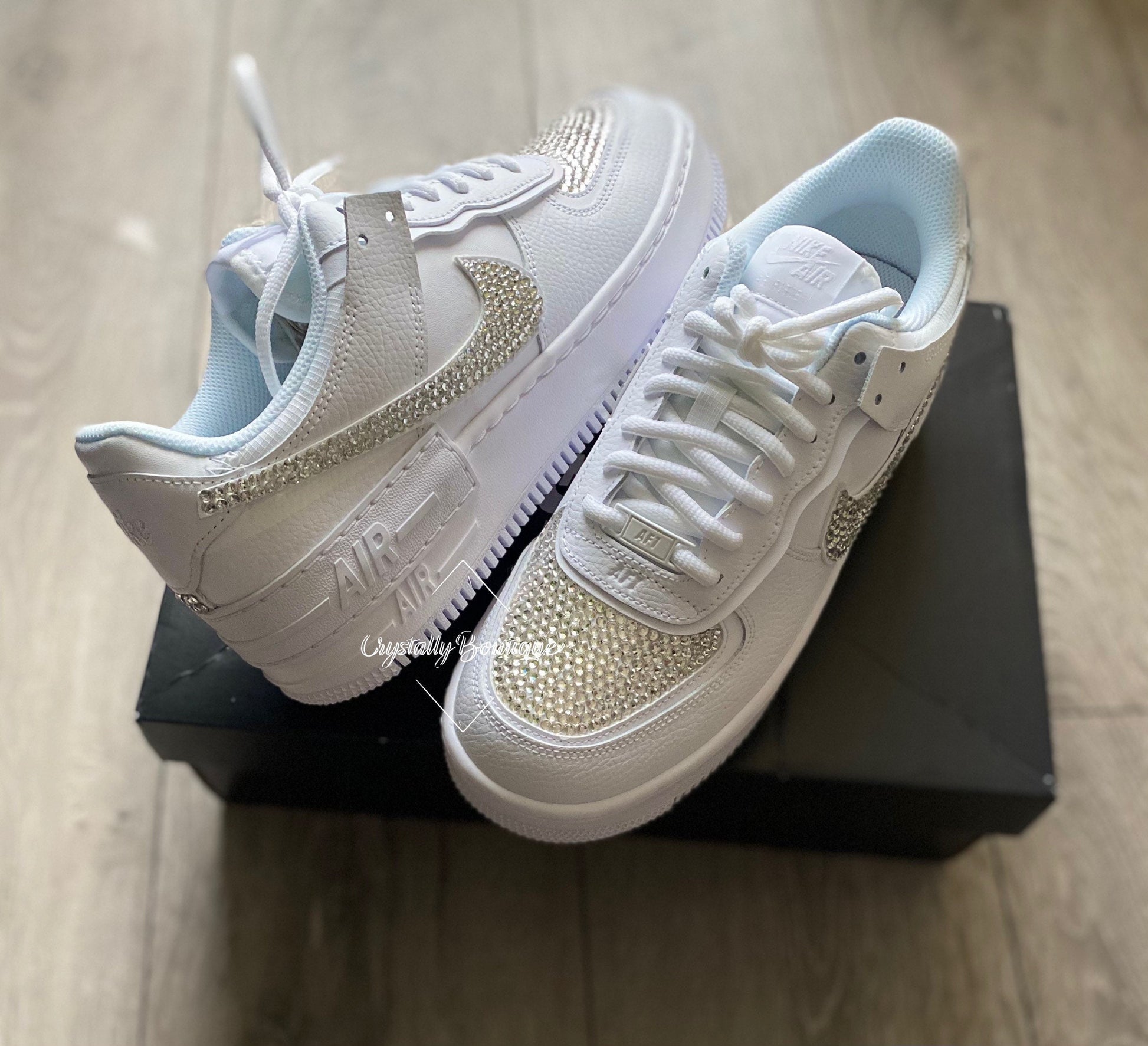 Please note all Nike Air Force Ones are know to crease if bend your feet in them, therefore with crystals there may cause them to get loose and come off quicker. Please handle with care, occasional use recommended.